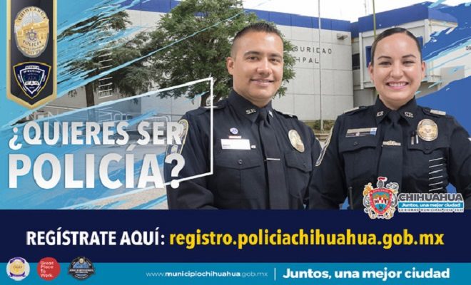 Si tienes vocación de servicio y quieres pertenecer a una de las mejores corporaciones del país, el Ayuntamiento de Chihuahua, a través de la Dirección de Seguridad Pública Municipal te invita a registrar tus datos de manera virtual para ser considerado en el proceso de reclutamiento que se estará llevando a cabo por etapas en la Escuela de Policía.