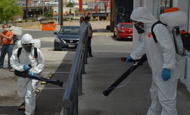 Chihuahua.- El Gobierno Municipal, a través de la Dirección de Mantenimiento Urbano, comenzó con la desinfección diaria del exterior de los hospitales Central y General, además de algunas sucursales bancarias y el primer cuadro de la ciudad.