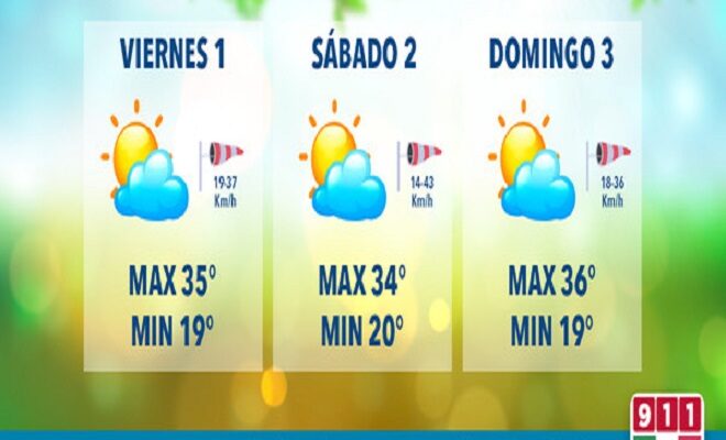 Hasta los 36 grados centígrados llegará el termómetro durante este fin de semana, según el pronóstico emitido por la Coordinación Municipal de Protección Civil, y aunque se esperan cielos parcialmente nublados, es importante no exponerse al sol por periodos prolongados e hidratarse de manera constante para evitar problemas de salud.