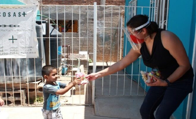 Brazos de Dios A.C. es un comedor que atiende a un promedio de 100 niños que acuden a la escuela para darles una comida diaria. Debido a la contingencia por COVID-19 se encuentra cerrado para acatar las recomendaciones de distanciamiento social, pero no dejaron pasar desapercibido el Día de la Niñez y lograron hacer llegar la alegría propia de la celebración a las familias de la comunidad.