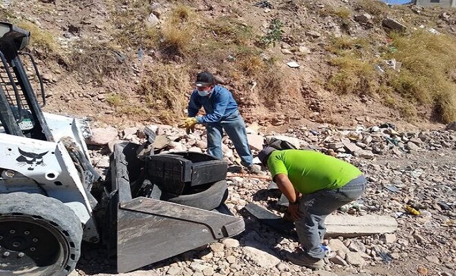 – Los Arcos a la altura de calle Mina La Calera aguas abajo, y también a la altura de la avenida Insurgentes de la colonia Nuevo Triunfo en la colonia El Porvenir, en donde se han retirado varias toneladas de basura, escombro y maleza.