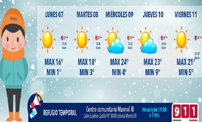 Ciudad de Chihuahua.- Un ligero incremento en la temperatura es lo que, según datos recabados por la Coordinación Municipal de Protección Civil, de acuerdo al pronóstico que emite el Servicio Meteorológico Nacional, se espera para los próximos días en la capital del estado, sin embargo es importante continuar acatando las recomendaciones de la autoridad para evitar problemas propios de la temporada.