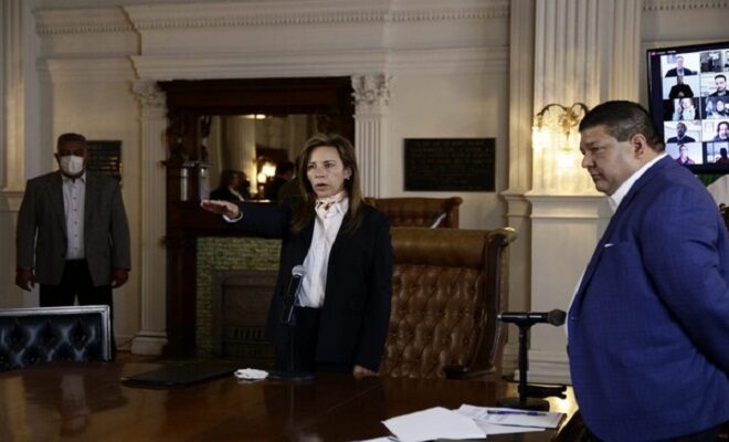 Ciudad de Chihuahua.- En uso de las facultades que le otorga la ley la maestra María Angélica Granados Trespalacios rindió protesta la mañana de este 2 de enero como presidenta municipal de Chihuahua, esto tras la licencia concedida a Maru Campos Galván para separarse del cargo, en sesión extraordinaria de Cabildo.