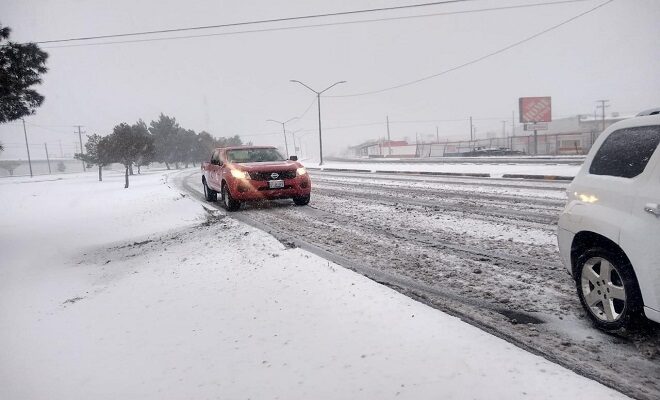 El frente frío 35 acumuló una pulgada de nieve en la frontera; se mantiene vigilancia preventiva en la Janos-Agua Prieta.