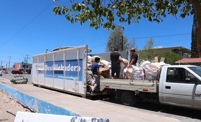 Ciudad de Chihuahua.- El Gobierno Municipal a través del programa permanente de Destilichadero, ha recolectado en lo que va del año decenas de toneladas de tiliches, basura diversa, llantas, con lo que se evita su acumulación en las casas y posible abandono en espacios públicos, además de beneficiar a miles de chihuahuenses.