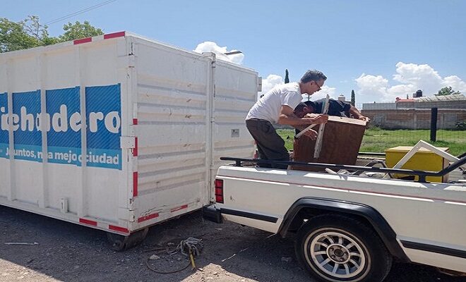 Ciudad de Chihuahua.- La Dirección de Servicios Públicos Municipales, organiza cada semana al menos cuatro programas de Destilichadero a fin de retirar tiliches, basura, maleza, llantas, muebles y demás residuos que el camión recolector no puede llevarse debido a su tamaño.