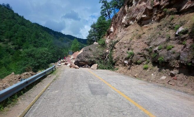 La Unidad de Protección Civil Municipal de Guachochi informó que la carretera Guachochi-Creel permanece completamente cerrada a la circulación, a consecuencia de un deslave ocurrido a la altura del kilómetro 130, entre Basíhuare y Cusárare.