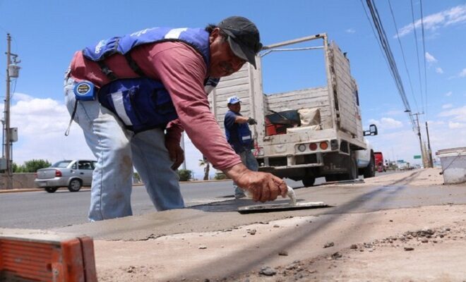 Ciudad de Chihuahua.- Con el objetivo mantener en buenas condiciones las principales calles y avenidas de la ciudad, la Dirección de Servicios Públicos Municipales, trabaja en la reparación de guarniciones y partes de camellones dañados al sur de Chihuahua Capital.