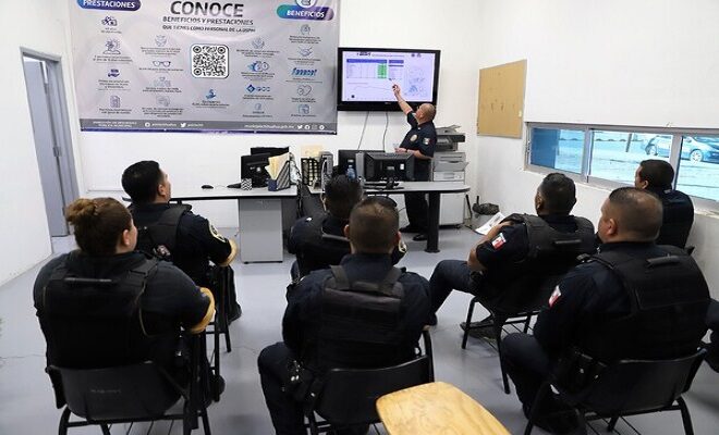 Ciudad de Chihuahua.- Un nuevo modelo de trabajo ha sido implementado por la Dirección de Seguridad Pública Municipal (DSPM), inició en la recién inaugurada Comandancia Dual del Distrito Morelos, al sur de la ciudad, generando resultados, al incluir reuniones constantes de coordinación estratégica entre los elementos de los diferentes turnos adscritos a esta delegación, aunado a la presencia y cercanía policial con la comunidad de esa zona.