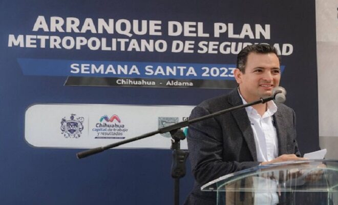 Ciudad de Chihuahua.– Más de mil 200 elementos de seguridad, protección civil y bomberos de los municipios de Chihuahua y Aldama, participan en el “Plan Metropolitano de Seguridad Semana Santa 2023”, que inicia hoy con el banderazo de arranque por parte del alcalde de la Capital Marco Bonilla, su homólogo de Aldama, Miguel Rubio, además de los titulares de las corporaciones policiales y de emergencias.