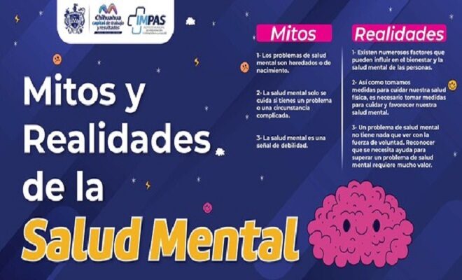 Ciudad de Chihuahua.- Al ser la salud mental un tema fundamental para el desarrollo integral de las familias chihuahuenses, el Instituto Municipal de Prevención y Atención a la Salud (IMPAS), comparte información importante sobre los mitos y realidades de la salud mental.