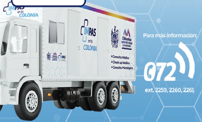 Ciudad de Chihuahua.- El Instituto Municipal de Prevención y Atención a la Salud (IMPAS), invita a las familias de la Capital a aprovechar los servicios gratuitos en los consultorios móviles del programa “IMPAS en Tu Colonia”, que promueve el cuidado a la salud de las y los chihuahuenses en respuesta a la visión del alcalde Marco Bonilla de hacer de Chihuahua una Capital de trabajo y resultados.