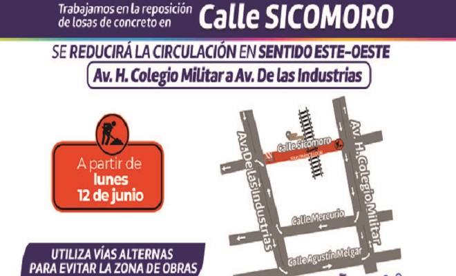 Estos trabajos de demolición y colocación de la nueva pavimentación de concreto hidráulico se realizará en tramos en mal estado de la calle Sicomoro, para mejorar la circulación de miles de conductores que utilizan esta vía para llegar a sus lugares de trabajo o escuela.