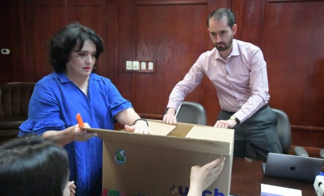 Chihuahua.- En presencia de directivos de las diversas unidades académicas de la Universidad Autónoma de Chihuahua, fueron entregados los paquetes cuyo contenido son los resultados del examen Ceneval, que fue aplicado el pasado 16 de junio.