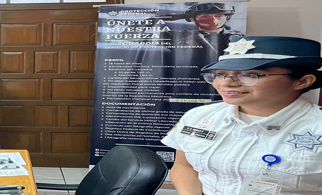 El Servicio de Protección Federal, explicó, es una institución que lleva 14 años activa que se dedica al resguardo de instalaciones del Gobierno Federal y ofrece la vacante de guardia de seguridad en Chihuahua debido a que en la entidad ofrece muchos servicios.
