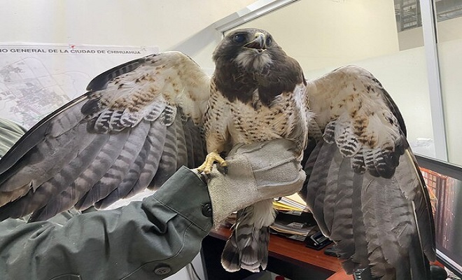 Ciudad de Chihuahua.- Personal del municipio de Chihuahua, atendieron un reporte de la presencia de un halcón en el patio de un domicilio en la colonia Palestina, el cual, al parecer, estaba herido o enfermo. Personal de campo acudió al sitio y aseguró un halcón cola roja (buteo jamaicensis) para después trasladarlo a la Dirección donde la veterinaria lo valoró, encontrando cataratas que cubren sus ojos, la cual es causante de ceguera aguda, posteriormente fue trasladado a PROFEPA donde se le dará la atención necesaria y en caso de ser posible puesto en libertad en su hábitat natural.