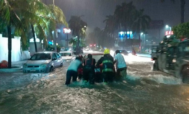 La principal avenida de la ciudad, la Av. Miguel Alemán, resultó anegada, con decenas de árboles caídos y mobiliario urbano en pedazos, además de un centro comercial con graves destrozos. Grandes hoteles también sufrieron serios daños, incluso en las habitaciones.