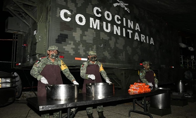 6,500 elementos de Sedena apoyando en la repartición de agua y despensas, cocinas y comedores comunitarios, transporte y operación de centros de acopio, así como reactivación de vías de comunicación.