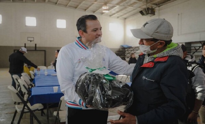 Ciudad de Chihuahua.- En esta época donde la unión y la solidaridad abundan, el alcalde Marco Bonilla y la presidenta del DIF Municipal, Karina Olivas, celebraron la navidad con personas en situación de calle en el centro comunitario Mármol III.