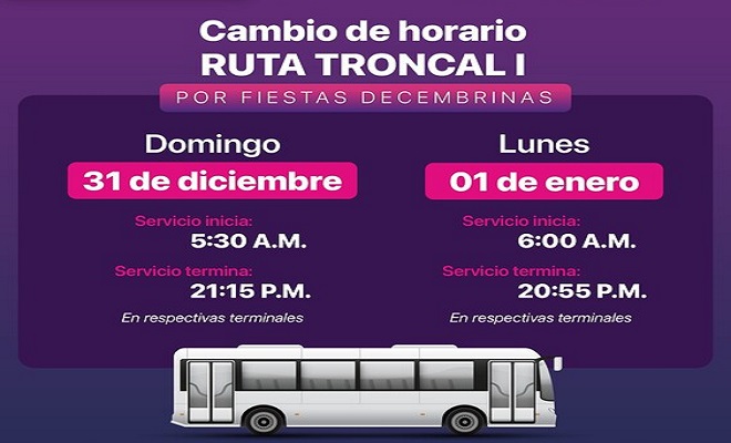 Cambian horarios en Ruta Troncal 1 por festividades de año nuevo