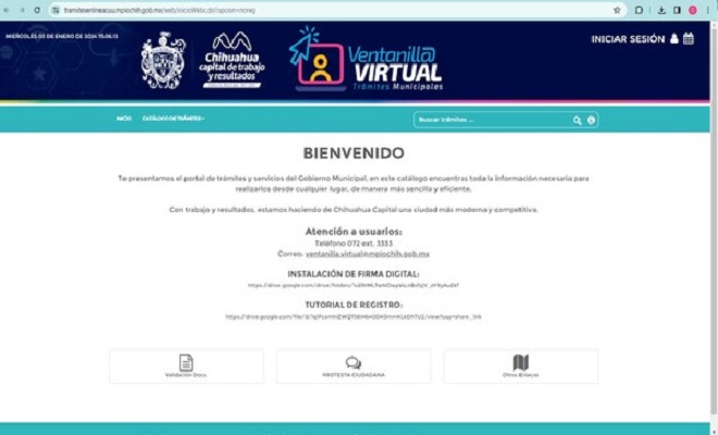 Ciudad de Chihuahua.- Da a conocer Municipio que la «Ventanilla Virtual del Gobierno Municipal», estará fuera de línea a partir del jueves 4 hasta el sábado 6 de enero por mantenimiento al servidor, informó la directora de Planeación e Innovación Gubernamental, Verónica Rodulfo, quien solicitó paciencia a todos los usuarios que utilizan la página web para realizar alguno de los 126 trámites municipales que pueden hacerse por internet.