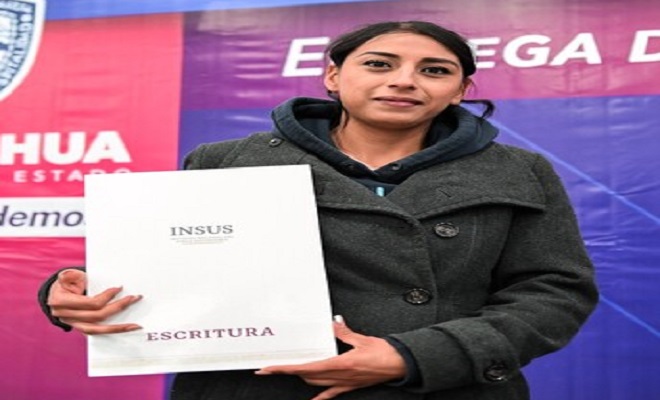 Chihuahua.- El Instituto Nacional del Suelo Sustentable (INSUS), entregó en Ciudad Juárez 560 escrituras de vivienda a igual número de familias, lo que las convierte en propietarias de su patrimonio.