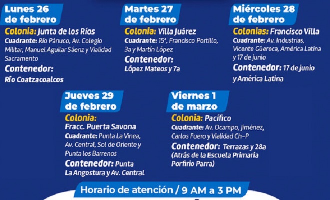 A continuación, se muestra el calendario de colonias que visitará el programa: