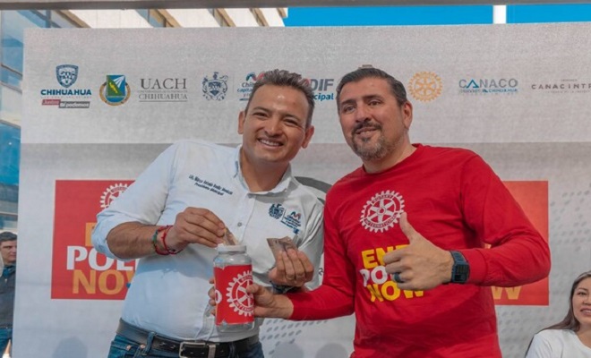 El alcalde de Chihuahua, Marco Bonilla Mendoza y la presidenta del DIF Municipal, acompañaron en el arranque de boteo del Club Rotario, que tiene como fin reunir fondos para la erradicación de la Polio en el mundo y para apoyar a la asociación “Unidas por Amor”, la cual es un albergue y centro de atención para las adicciones.