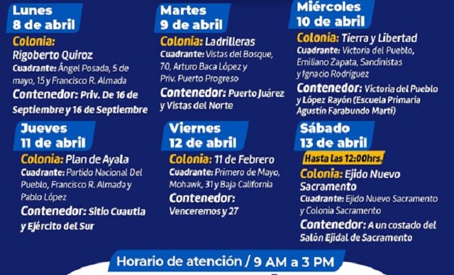 Aunado a ello, se realizan recorridos por los cuadrantes de las colonias que se visiten en la semana para retirar los tiliches, por lo que se pide que dejen estos deshechos al pie de banqueta.