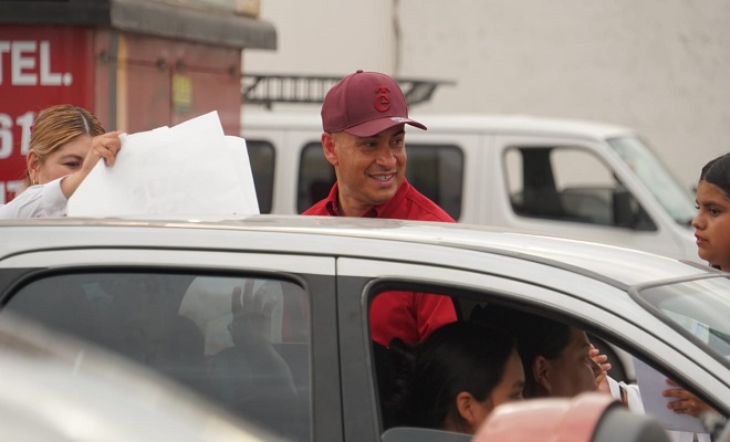 Ciudad de Chihuahua.- El candidato a la presidencia municipal por la coalición “Sigamos Haciendo Historia” (MORENA), Miguel La Torre crece en simpatía entre las calles de la ciudad, la presencia en los cruceros y la breve charla que sostiene con la gente le ha valido el apoyo a sus propuestas de campaña.