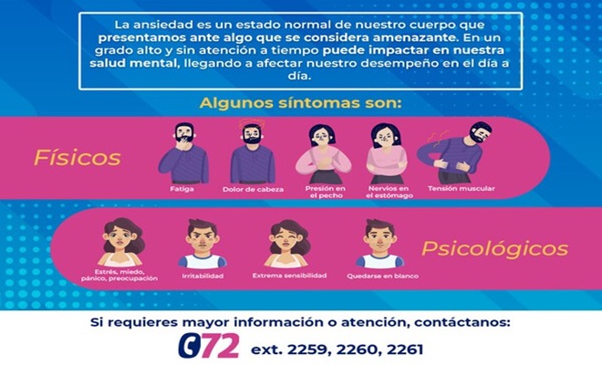 La ansiedad es un estado normal en nuestro cuerpo que pudiera llegar a presentarse ante algo que se considera amenazante. En un grado y sin atención a tiempo puede impactar en nuestra salud mental, llegando a afectar nuestro desempeño en el día a día.