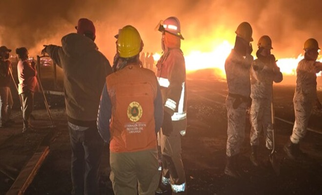 La CEPC indicó que los equipos de combate de incendios continuarán con las labores de enfriamiento y remoción de escombros, para prevenir cualquier posible reactivación del fuego.