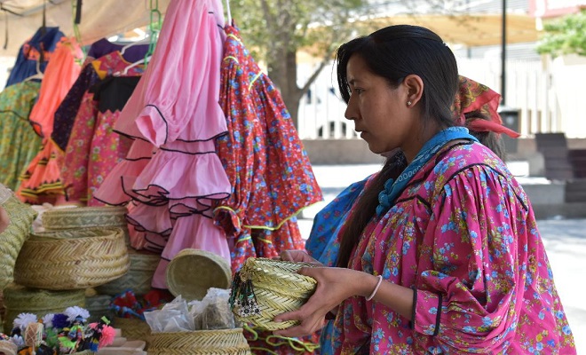 Un total de 80 artesanas y artesanos promocionan artículos hechos por ellos mismos como ropa, accesorios y alimentos típicos de los pueblos originarios de Chihuahua.