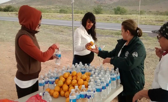 El Coordinador estatal de Chihuahua Vive de la Secretaría de Desarrollo Social, Fermín Ordóñez Arana, indicó que la dependencia a su cargo, instaló tres módulos de atención, una cada 5 kilómetros, donde se está entregando agua y naranjas en forma gratuita a los devotos y se han dispuesto 14 baños.