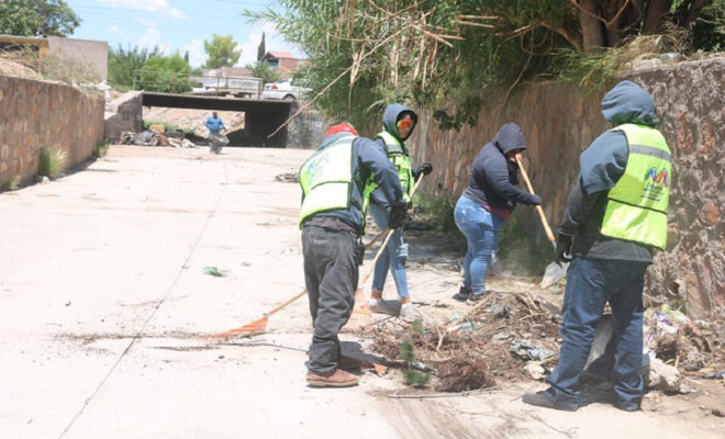 Ciudad de Chihuahua.- Con el objetivo de evitar acumulación de basura, la Dirección de Servicios Públicos Municipales, trabaja de forma permanente en la limpieza de arroyos al norte de la ciudad, así como las partes canalizadas de diferentes afluentes.