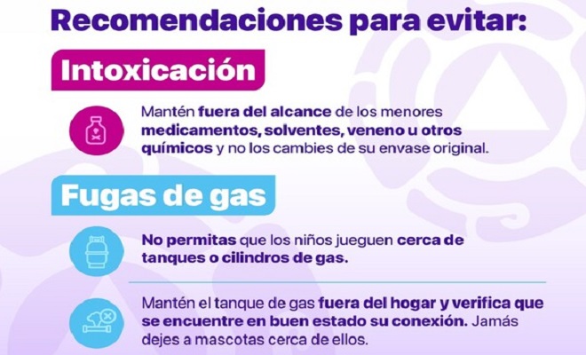 También es importante seguir las medidas preventivas correspondientes en caso de que el domicilio cuente con algún tipo de alberca o cubeta llena con agua, ya que pueden ser una causa de ahogamiento.