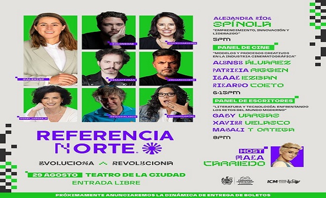 Referencia Norte 2024, que se celebrará del 26 al 31 de agosto, ofrece un ciclo de conferencias y conciertos. El 29 de agosto, el Teatro de la Ciudad será el escenario de un día lleno de conocimiento y experiencias compartidas por destacados ponentes, programación que se describe a continuación: