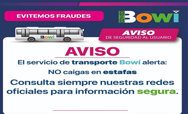Chihuahua.- La Operadora de Transporte (OTV) hace un llamado a la población para que evite caer en estafas que circulan en páginas de redes sociales, en las cuales se ofertan viajes o tarjetas para el Bowí.