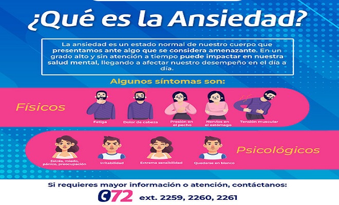 La ansiedad es un estado normal en nuestro cuerpo que pudiera llegar a presentarse ante algo que se considera amenazante. En un grado y sin atención a tiempo puede impactar en nuestra salud mental, llegando a afectar nuestro desempeño en el día a día.