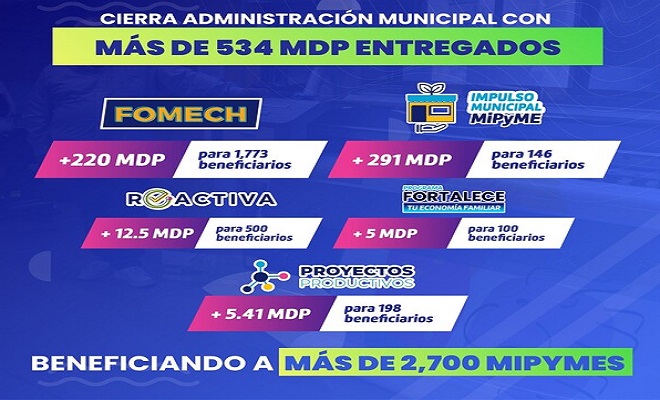 Cierra administración municipal con más de 534 mdp entregados a MiPyMEs