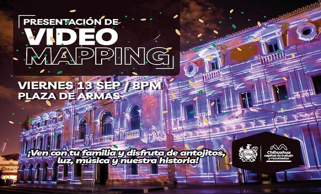 Ciudad de Chihuahua.- El Instituto de Cultura del Municipio, invita al estreno del video mapping en la Presidencia Municipal, evento que te conectará a tus raíces patrias, donde podrás disfrutar de antojitos mexicanos, luces, música y conocer más sobre la historia mexicana.