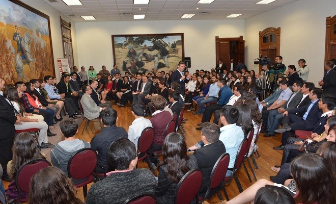 Se reunió Aurelio Nuño con 100 estudiantes de excelencia chihuahuenses