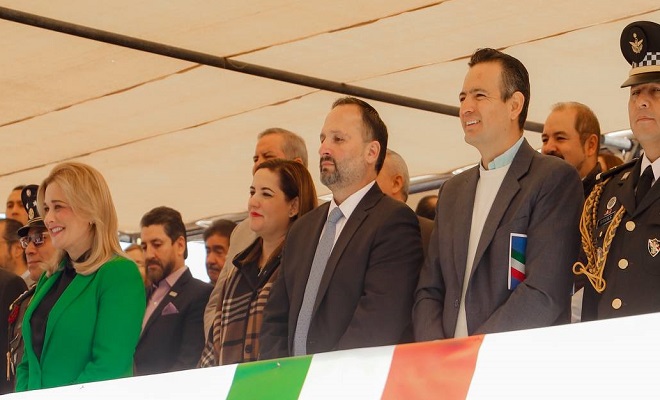 Ciudad de Chihuahua.- El alcalde de Chihuahua, Marco Bonilla, asistió al desfile por el 114 aniversario de la Revolución Mexicana junto a la gobernadora Maru Campos y otras autoridades de los diferentes niveles de gobierno, donde presenciaron a un contingente que incluyó la participación de diversas corporaciones de seguridad pública, la presencia de escuelas, clubes deportivos, de automotores, entre otros.