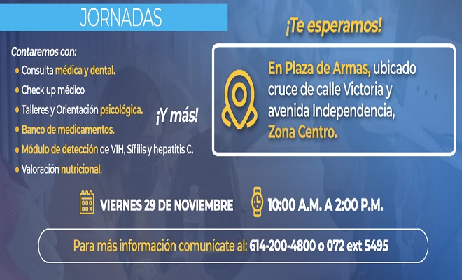 – Se brindarán diversas atenciones de salud de manera gratuita este 29 de noviembre.