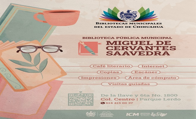 Ciudad de Chihuahua.– El Instituto de Cultura del Municipio, invita a conocer los servicios y actividades que ofrece la Biblioteca Pública Municipal Miguel de Cervantes Saavedra, ubicada en el Parque Lerdo.