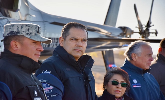 El despliegue de los más de 400 elementos de distintas corporaciones, inició en la caseta de Villa Ahumada y fue encabezado por el secretario de Seguridad Pública del Estado, Gilberto Loya.