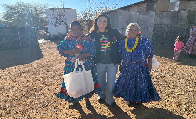 Ciudad de Chihuahua.- La Regidora Joni Barajas visitó los asentamientos tarahumaras de nuestra ciudad para compartir el espíritu navideño con las familias de esta comunidad.