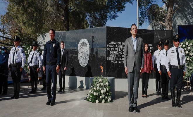 Ahí, el alcalde Marco Bonilla reconoció la valentía de los elementos que cayeron en el cumplimiento de su deber, dando la vida por personas desconocidas y, sobre todo, por su vocación de servir y proteger a las familias de Chihuahua Capital.