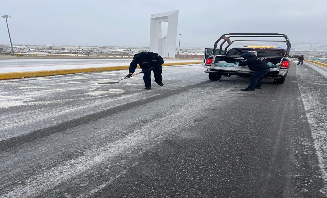 Chihuahua.- La Subsecretaría de Movilidad de la Secretaría de Seguridad Pública del Estado (SSPE) informó que mantiene de manera permanente un operativo de prevención y atención de incidencias en la ciudad de Chihuahua, debido a la presencia de nieve y el congelamiento parcial de diversas rutas.