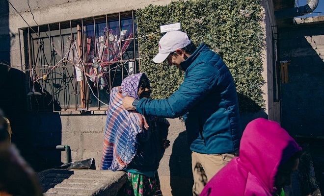 Ciudad de Chihuahua.- Hasta la última vivienda ubicada en las faltas del cerro donde se ubica el asentamiento rarámuri Napawika, el alcalde Marco Bonilla y todo el equipo del DIF Municipal y la Dirección de Desarrollo Humano y Educación, llegaron para seguir con las entregas de cobijas, chamarras y despensas para minimizar los efectos de las bajas temperaturas.